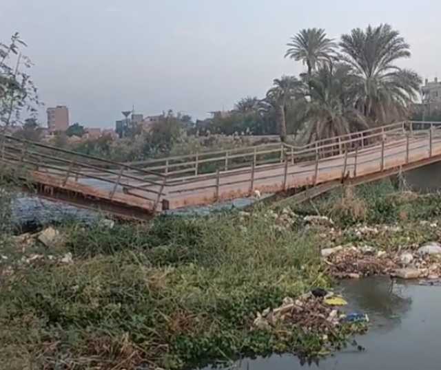 خارج الخدمة.. انهيار كوبري مشاة مهجور على ترعة الإبراهيمية بطما