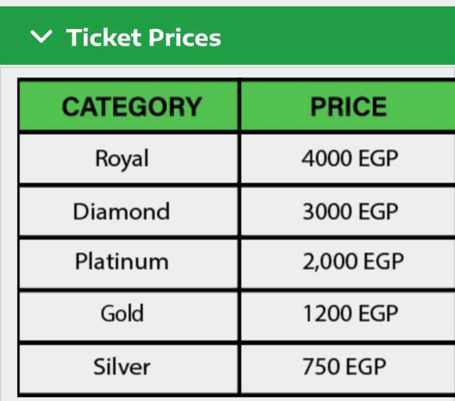 وجاءت أسعار تذاكر حفل عمر خيرت، بين الفئات السعرية التالية: (750 جنيه مصري، 1200 جنيه مصري، 2000 جنيه مصري، 3000 جنيه مصري، 4000 جنيه مصري).