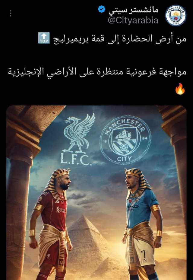 وشاركت الحساب الرسمي لـ مانشستر سيتي صورة لـ عمر مرموش ومحمد صلاح بـ الـ ai، مرتدين الزي الفرعوني المصري من داخل المتحف.