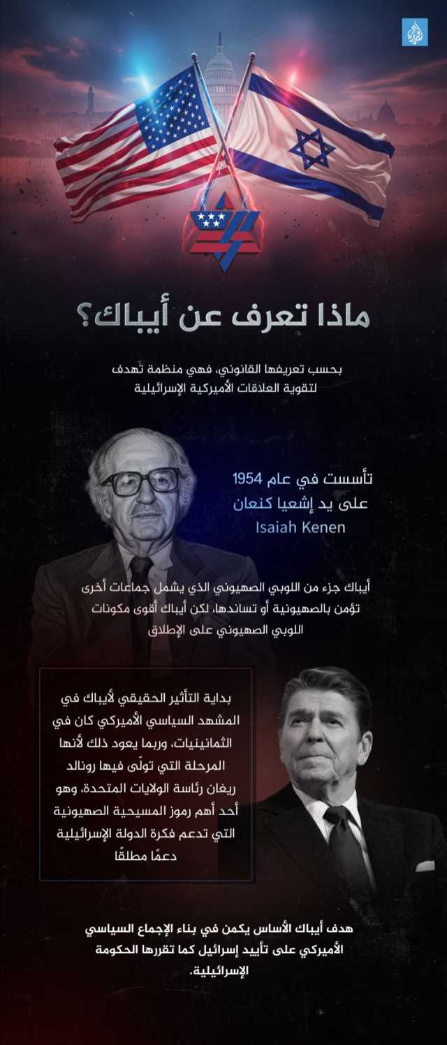 إعلانولذلك فالأيباك ليست مشروعًا يهوديًا، ولا حتى مشروعًا صهيونيًا فحسب، وإنما هي مشروع إسرائيلي، فالأيباك تستخدم اليهودية ولا تخدمها، وتتحالف مع الصهيونية لكنها لا يرتهن لها.