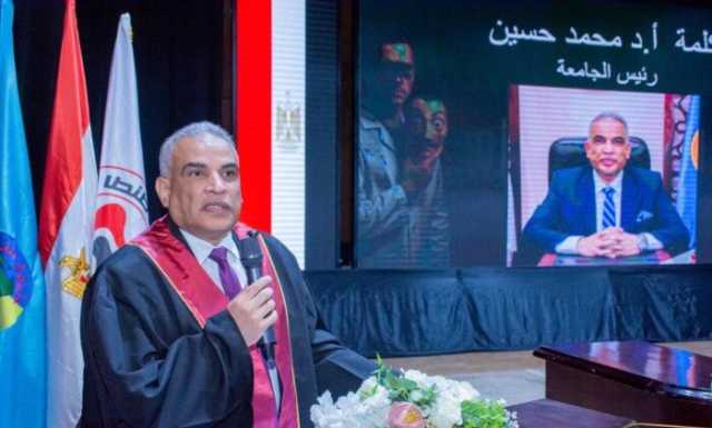 خلال كلمته هنأ الدكتور محمد حسين، الخريجين مشيداً بجهودهم وتحقيقهم هذا الإنجاز الأكاديمي، بعد أعوام من الكفاح والمثابرة، وأن ما انجزوه اليوم ليس نهاية الطريق بل هو بداية لمرحلة جديدة من حياتهم المهنية والإنسانية، مشدداً على المسؤولية العظيمة التي يحملها لقب "الطبيب"، والتي تتطلب الجمع بين الرحمة والعلم والمهارة والمسؤولية والإنسانية، مؤكدا أن طبيب الأسنان هو ركيزة أساسية من ركائز الصحة العامة، وليس مقتصراً على صحة الفم، داعياً الأطباء الجدد ليكونوا خير سفراء لجامعتهم ووطنهم، كما وجه رئيس الجامعة الشكر العميق لأعضاء هيئة التدريس والهيئة المعاونة والجهاز الإداري بالكلية الذين أسهموا في إعداد الكوكبة المتميزة الخريجين، مثمناً دور أولياء الأمور بوصفهم الداعمين الحقيقيين لرحلة الخريجين، وأشاد بمستوى تنظيم الحفل الذي يليق بكلية طب الأسنان، لافتاً إلى تميز الكلية في حصد جوائز التميز الداخلية.