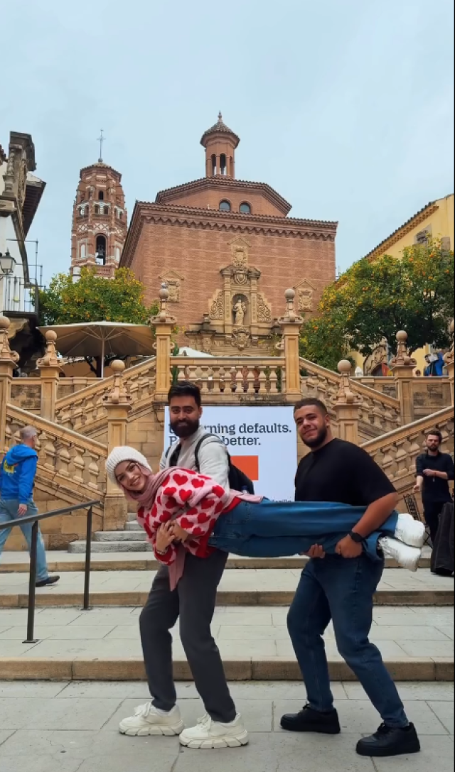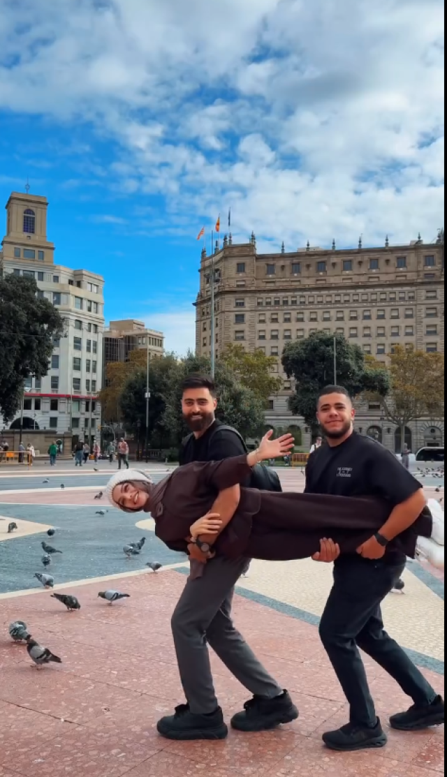 وفي الفيديو، الذي نشرته عبر حساباتها الرسمية، ظهرت عبير وهي تُحمَل على أكتاف زوجها وشقيقها أثناء تنقلهما بين عدد من المعالم السياحية الشهيرة، من بينها قوس النصر في باريس وقلعة مونتجويك والقرية الإسبانية في برشلونة، إلى جانب لقطات أخرى من شوارع أوروبية مختلفة.