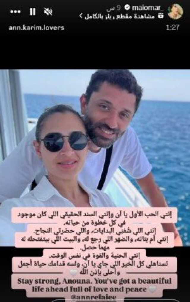 وتابعت مي عمر في رسالتها: «أنت اللي شفتي البدايات، واللي حضرتي النجاح، أنت أم بناته والضهر اللي رجع له، والبيت اللي بيتفتح له مهما حصل، أنت الحنية والقوة في نفس الوقت»، مضيفة: «تستاهلي كل الخير اللي جاي يا آن، ولسه قدامك حياة أجمل وأحلى بإذن الله».