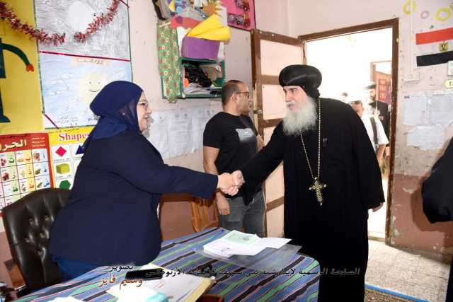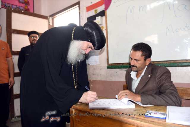 مطران بني سويف يدلي بصوته في انتخابات النواب بمدرسة القومية