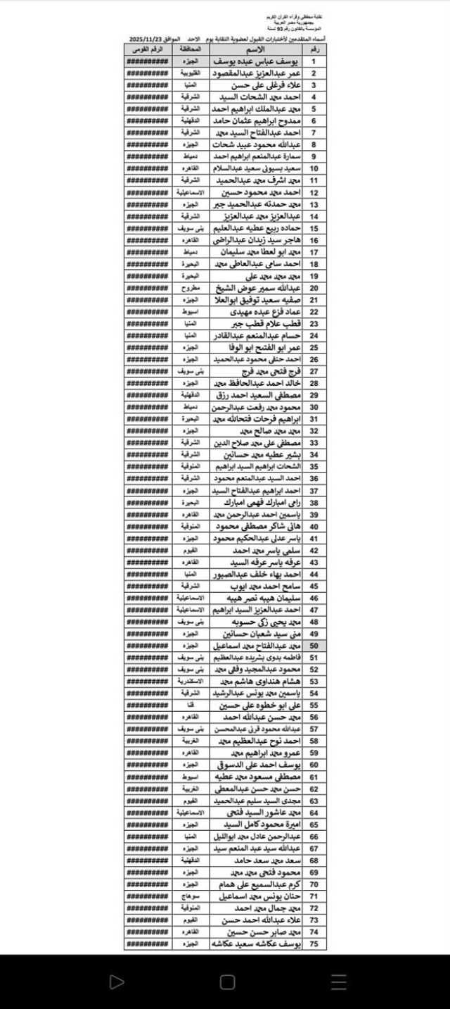 أوضحت النقابة في بيانها الرسمي أن الحضور مقتصر فقط على الأسماء المعلنة في الكشوف الرسمية المنشورة على صفحة النقابة، مشددة على أنه لن يتم اختبار أي عضو غير مُدرج في تلك الكشوف، وذلك لضمان العدالة والتنظيم الدقيق داخل لجان الاختبار.