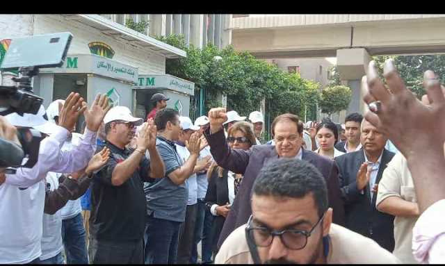 وصول أبو العينين إلى مقر هيئة النظافة بالدقي وسط حفاوة من الناخبين