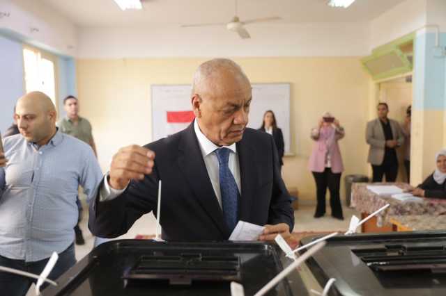 محافظ الجيزة يدلي بصوته بمدرسة النصر للغات بمدينة 6 أكتوبر