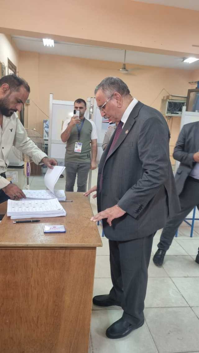 محافظ الجيزة يدلي بصوته بمدرسة النصر للغات بمدينة 6 أكتوبر