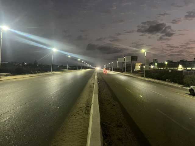 وشملت الأعمال إنارة طريق المعاهدة من منفذ الرسوة وحتى مدخل الطريق الدولي الساحلي، بطول ٢ كيلومتر من خلال تركيب وتشغيل كشافات تعمل بالطاقة الشمسية بهدف تحسين مستوى الرؤية الليلية على الطريق وتوفير بيئة آمنة لمستخدميه بما يحقق السيولة المرورية ويعزز معدلات الأمان.