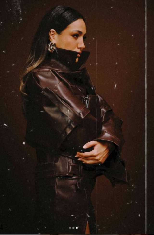 وبدت هند عبدالحليم بإطلالة شتويه، مرتدية فستان قصير مجسم، بأكمام، صمم الفستان من قماش الجلد، لتواكب موضة خريف وشتاء 2025-2026، الفستان صمم بأسلوب جذاب مزين بالسوستة، الفستان عكس قوامها الرشيق ووزنها المثالي.