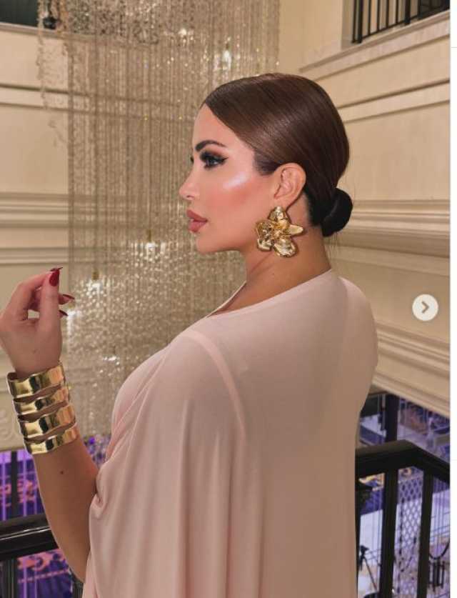 وتزينت ببعض الإكسسوارات الذهبية لتزيد من فخامة إطلالتها.