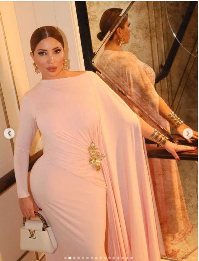 وبدت نسرين طافش بإطلالة ساحرة، مزجت بين الأناقة والجاذبية في آن واحد، مرتدية فستان طويل بأكمام طويلة، صمم الفستان من قماش الحرير باللون البينك، لتستعرض أناقتها على طريقتها الخاصة.
