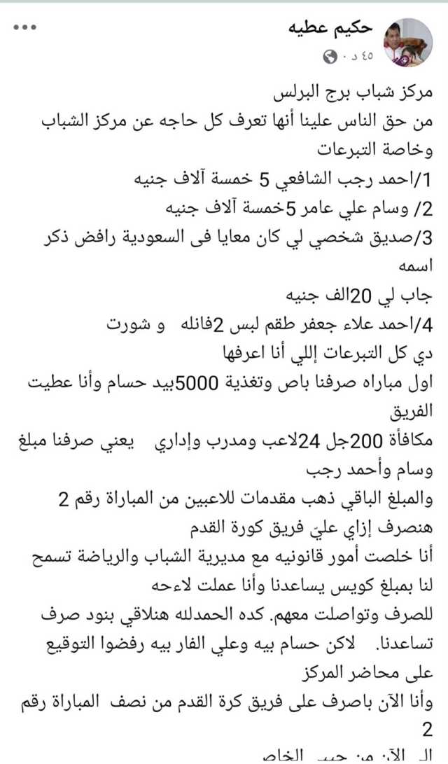 وزاد الموقف تأزمًا بعد تصريحات الكابتن حكيم عطية، رئيس مجلس الإدارة، الذي أعلن صراحة أنه لم يعد قادرًا على تمويل الفريق من نفقاته الشخصية كما كان يفعل خلال المواسم الماضية، مما أدى إلى حالة من القلق بين اللاعبين وأفراد الجهاز الفني، وكذلك بين جماهير النادي التي تخشى توقف النشاط الكروي تمامًا.