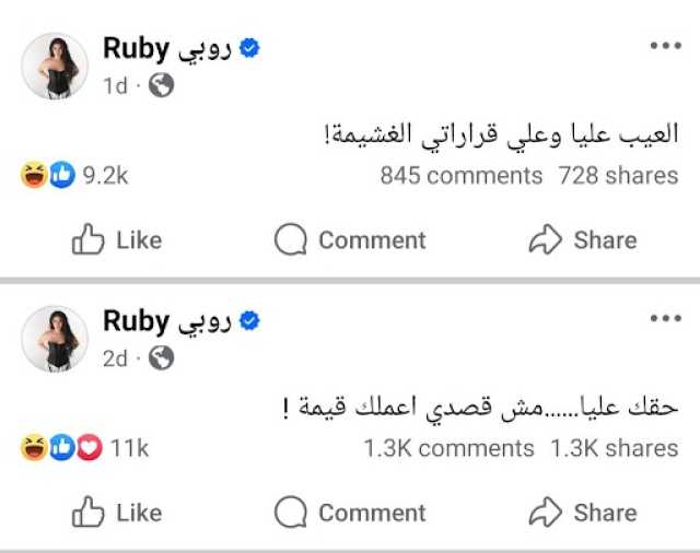 اقرأ ايضاًفقد كتبت روبي في منشور عبر صفحتها الرسمية على "فيسبوك": "حقك عليا.