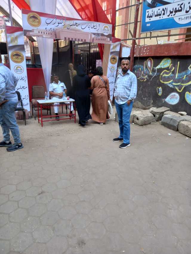توافد عدد من النساء على مدرسة 6 أكتوبر الابتدائية ببولاق الدكرور في محافظة الجيزة، للإدلاء بأصواتهن في انتخابات مجلس النواب.