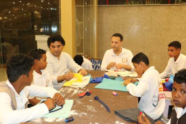 وفي ورشة الخيامية، شرح الفنان عماد إبراهيم للأطفال طرق اختيار الألوان وتنسيقها وتنفيذ زخارف مستوحاة من الرموز المصرية القديمة مثل زهرة اللوتس وعين حورس. وأوضح عبد الحميد حمدي من مطروح أنه تدرب على تنفيذ حقيبة بالخيامية، فيما أشار إبراهيم طه من شمال سيناء إلى أنه تابع فيديوهات تعليمية للورشة واستفاد منها كثيرا.