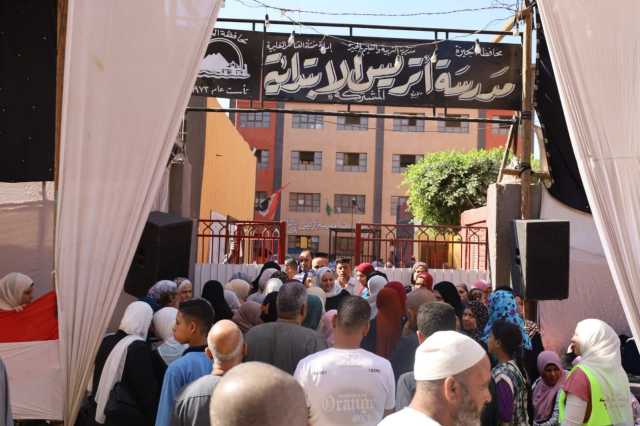 رافعين أعلام مصر.. إقبال كثيف على لجنة أتريس بمنشأة القناطر