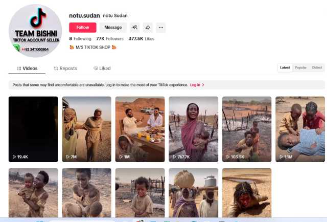وحصد المقطع 7 ملايين مشاهدة في هذا الحساب وحده، الذي يضم الحساب العديد من مقاطع الفيديو المُنتجة عبر الذكاء الاصطناعي. وتحتوي الصورة التعريفية للحساب على رقم هاتف مفتاحه يعود إلى دولة باكستان، وعبارات تقول: "Tiktok account seller" و"Team Bishni".
