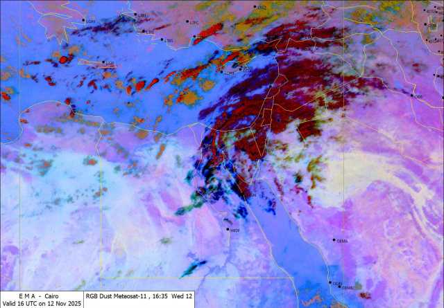 كما توقعت الأرصاد فرصًا لسقوط أمطار خفيفة قد تكون متوسطة أحيانًا على مناطق من جنوب الوجه البحري، على فترات متقطعة، وكذلك أمطار خفيفة على مناطق من القاهرة الكبرى ومدن القناة على فترات متقطعة.