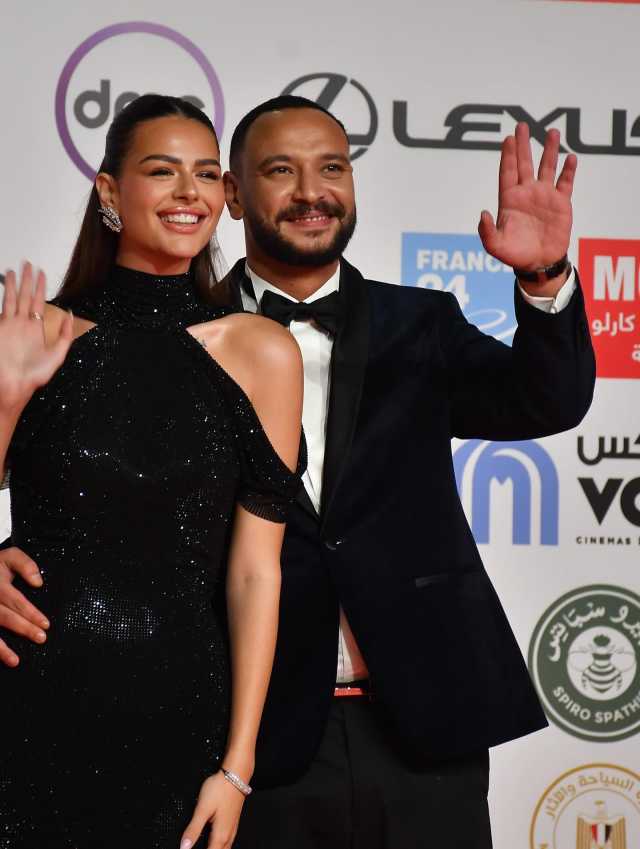 بالأسود.. هنادى مهنا وزوجها من حفل افتتاح مهرجان القاهرة السينمائي