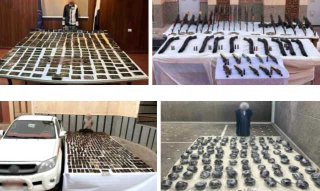 ضبط كميات ضخمة من المخدرات والأسلحة أسفرت الحملات الأمنية عن ضبط باقي عناصر التشكيلات الإجرامية وبحوزتهم قرابة 723 كيلوجرامًا من المواد المخدرة المتنوعة، شملت الحشيش والهيدرو والشابو والبودرة والأفيون والهيروين، إضافة إلى أكثر من 65 ألف قرص مخدر.