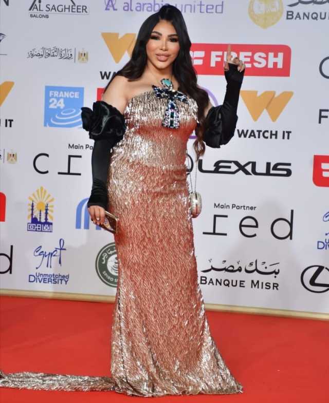 إطلالة فرعونية..غادة إبراهيم تتألق بفستان ذهبي فاخر مرصع بمفتاح الحياة فيالقاهرة السينمائي