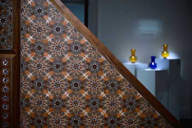 وتشمل الأعمال المعروضة المنابر وحوامل القرآن والمخطوطات اليدوية والبلاط المزخرف والثريات الزجاجية والأبواب الخشبية المنحوتة والأحزمة المزخرفة.