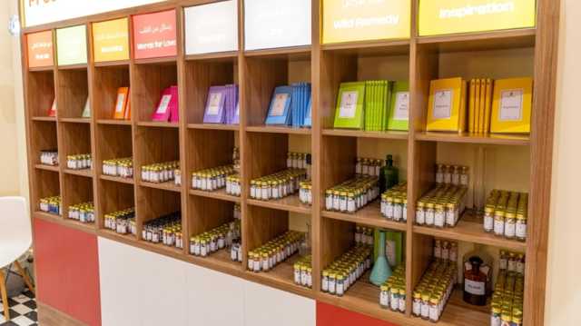 داخل «صيدلية الشعر»، تصطف العلب الطبية على رفوف صغيرة تحمل تسميات لافتة:«شرارة الإبداع» و«دواء الأرض» و«طاقة البهجة» و«مساحة الأمان» و«رسائل من القلب» و«رحلة اكتشاف الذات».