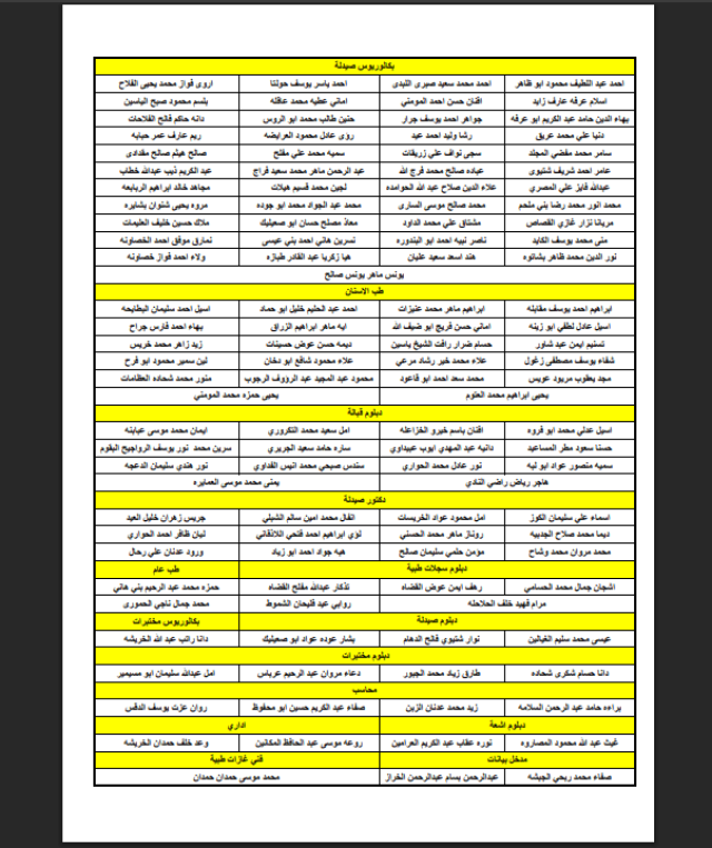 تدعو #وزارة_الصحة المرشحين للتعيين المدرجة أسماؤهم بالملف أدناه مراجعة مديرية الموارد البشرية الطابق الثاني في مبنى الوزارة الكائن في طبربور قرب مستشفى الأمير حمزة لإستكمال #إجراءات_التعيين خلال عشرة ايام من تاريخه مصطحبين الوثائق المدرجة أدناه وعلى نسختين مصدقتين وذلك من الساعة التاسعة صباحا ولغاية الساعة الواحدة ظهرا ,