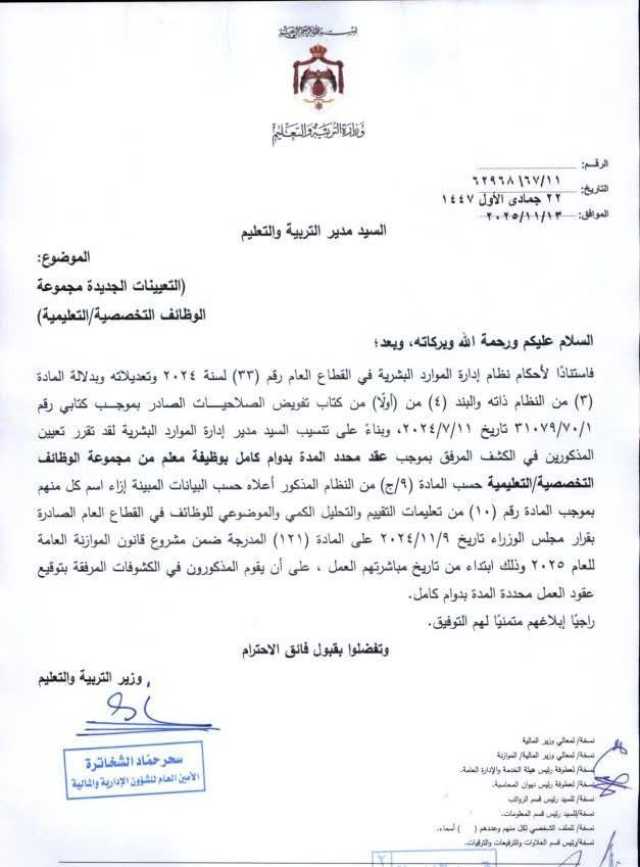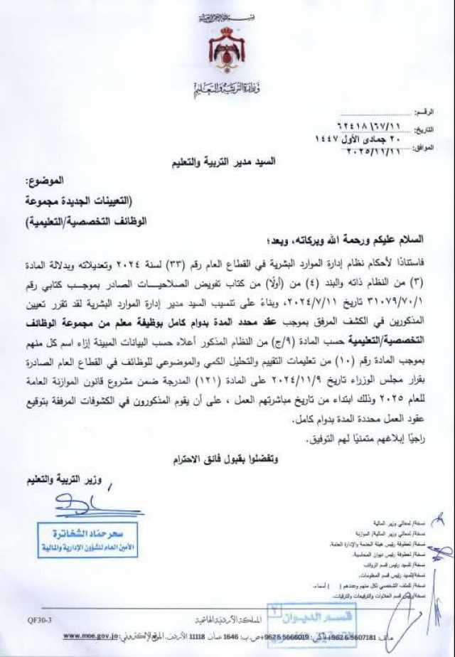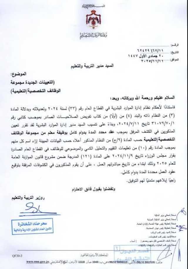 قرر #وزير_التربية والتعليم الأستاذ الدكتور #عزمي_محافظة، إجراء #تعيينات جديدة في الوزارة للعام الدراسي 2025 – 2026.