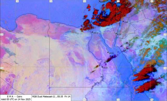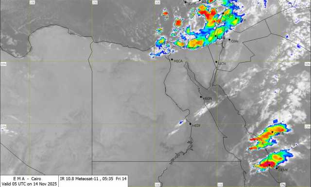 نشرت هيئة الأرصاد الجوية، أخر صور للأقمار الصناعية تشير إلى استمرار السحب الرعدية الممطرة، التي تؤثر على السواحل الشمالية الشرقية ومناطق من شمال الوجه البحري.