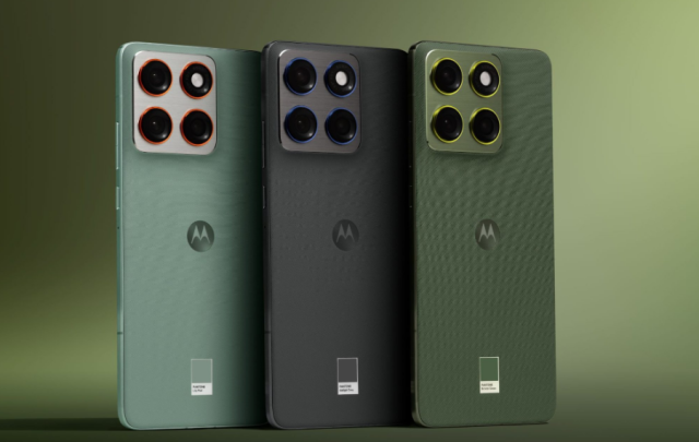 الهاتف يأتي بمجموعة ألوان مميزة من اختيار Pantone، ومع نسخة مميزة تحمل لون أخضر برونزي مستوحى من ألوان “السيليساو” البرازيلية، ويتميز الجهاز بإطار من الألومنيوم المصقول، ولوحة كاميرا معدنية مصقولة، وشعار Moto مصقول أيضا.