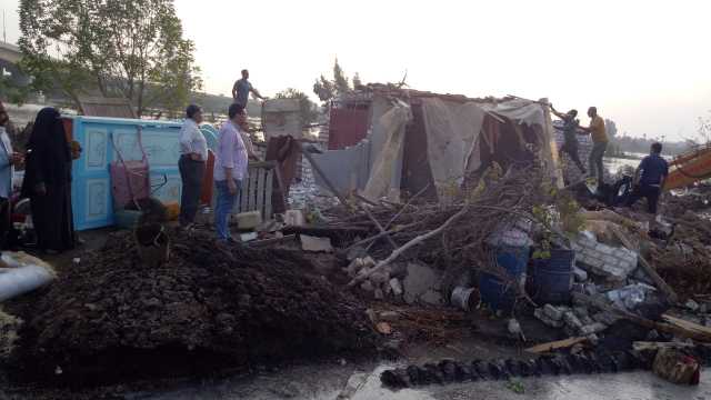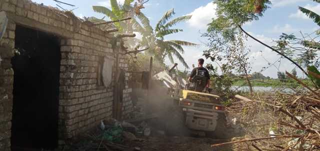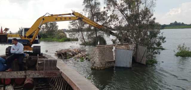 استمرار إزالة التعديات على طرح نهر النيل في المنوفية.. صور
