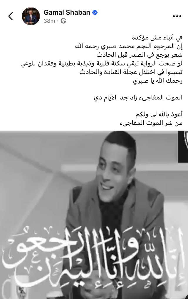 جمال شعبان: رواية غير مؤكدة تشير لتعرّض محمد صبري لأزمة قلبية قبل الحادث
