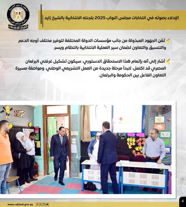 كما أدلى بصوته في انتخابات مجلس النواب 2025، مثمنًا جهود مؤسسات الدولة المختلفة، لتوفير مختلف أوجه الدعم والتنسيق والتعاون لضمان سير العملية الانتخابية بانتظام ويسر.