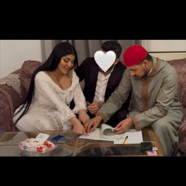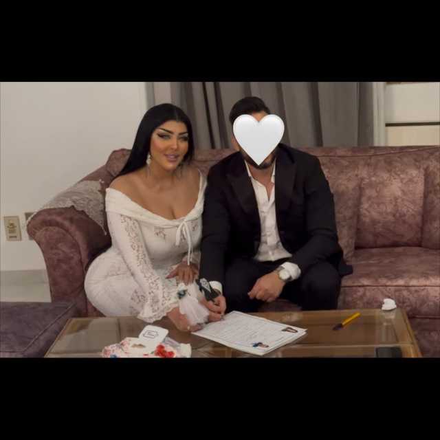 و شاركت سلمي الشيمي جمهورها صورا من عقد قرنها بعلامة قلب علة وجه زوجها لاخفاء ملامحه.