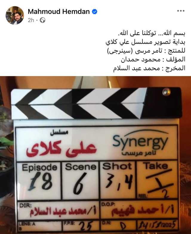وكتب حمدان على حسابه الشخصي بموقع فيسبوك: "بسم الله… توكلنا على الله، بداية تصوير مسلسل علي كلاي، للمنتج : تامر مرسى (سينرجى)، المؤلف : محمود حمدان، المخرج : محمد عبد السلام".