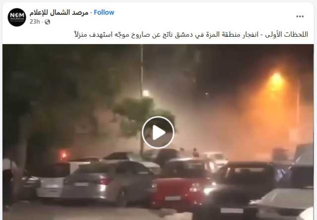 جاء تداول الفيديو مصحوبًا بوصف يقول: "اللحظات الأولى - انفجار منطقة المزة في دمشق ناتج عن صاروخ موجّه استهدف منزلاً".