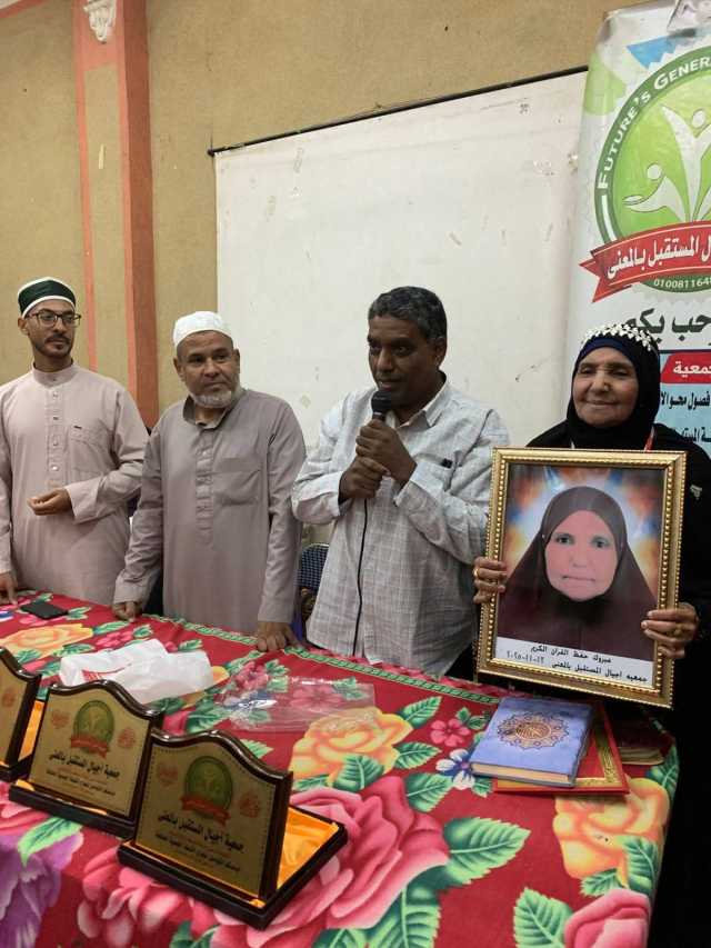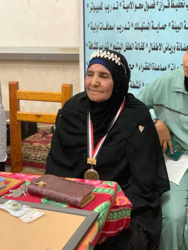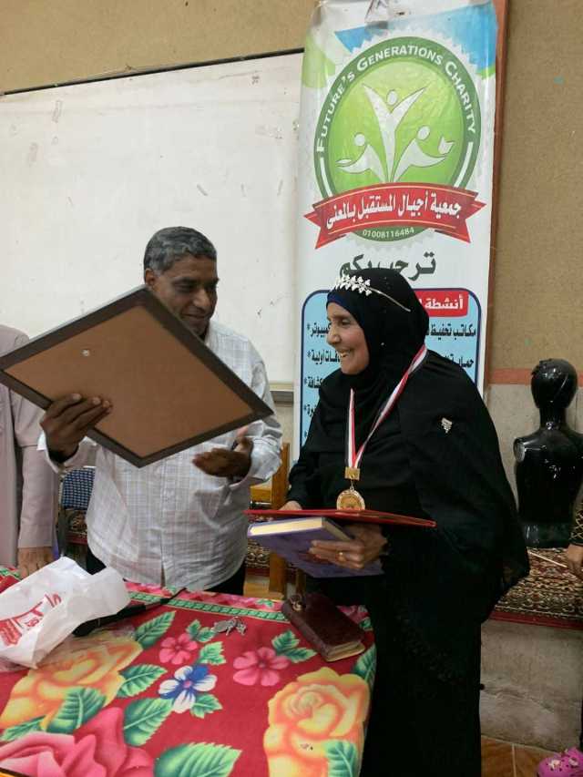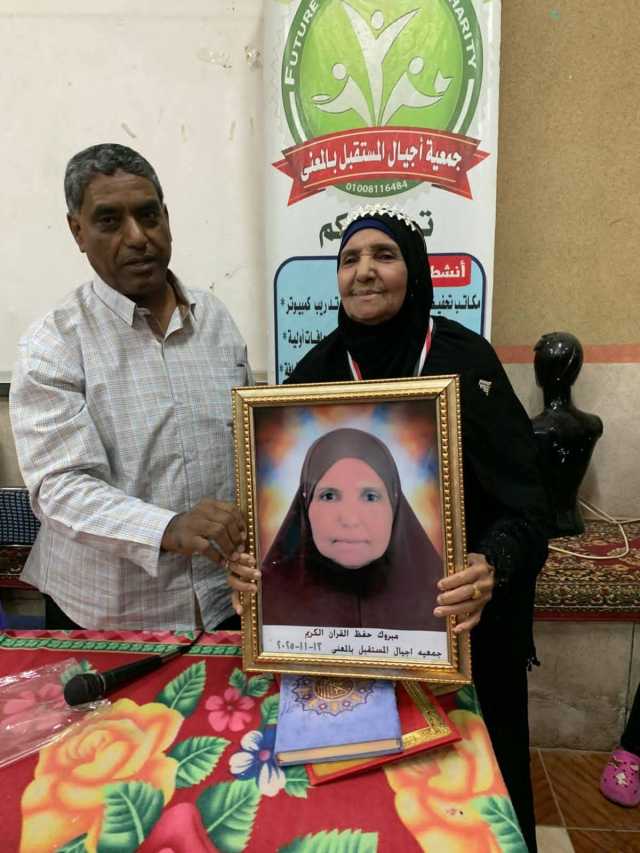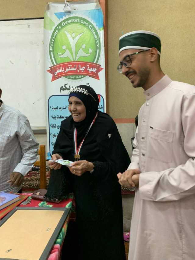 وقال أحمد عبدالقادر، رئيس مجلس إدارة جمعية أجيال المستقبل بالمعنا، إن الحاجة فاطمة عطيتو تبلغ من العمر ٧٩ عاما وكانت لا تقرأ ولا تكتب، فالتحقت بفصول محو الأمية بالجمعية، وتمكنت من إجادة القراءة والكتابة خلال فترة وجيزة، ثم عكفت على حضور حلقات حفظ القرآن وتعلم أحكامه بالجمعية.