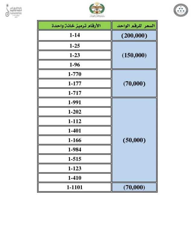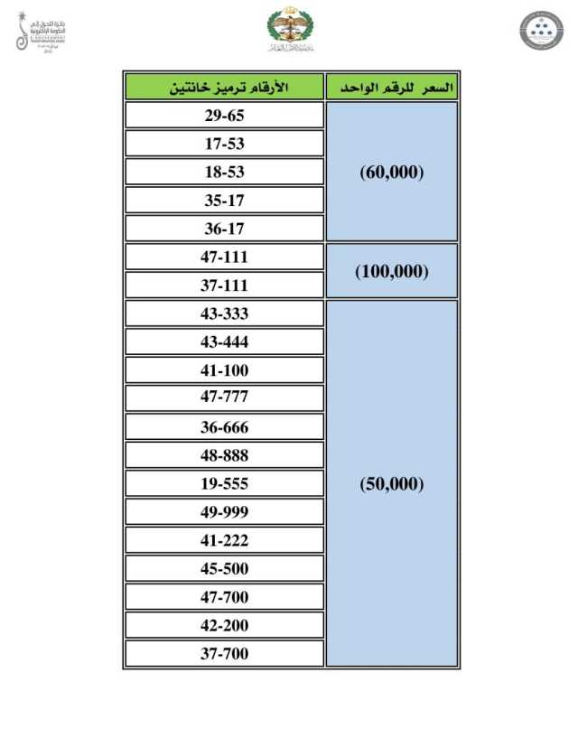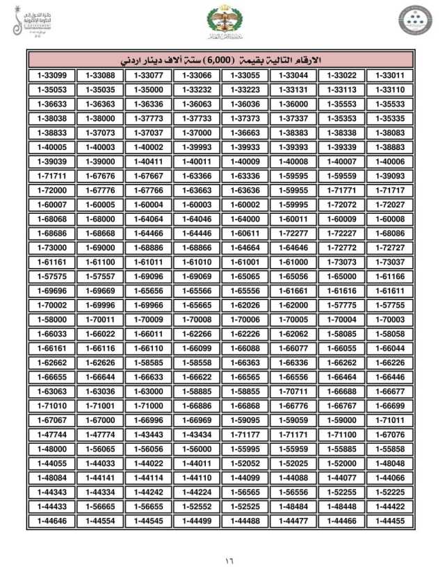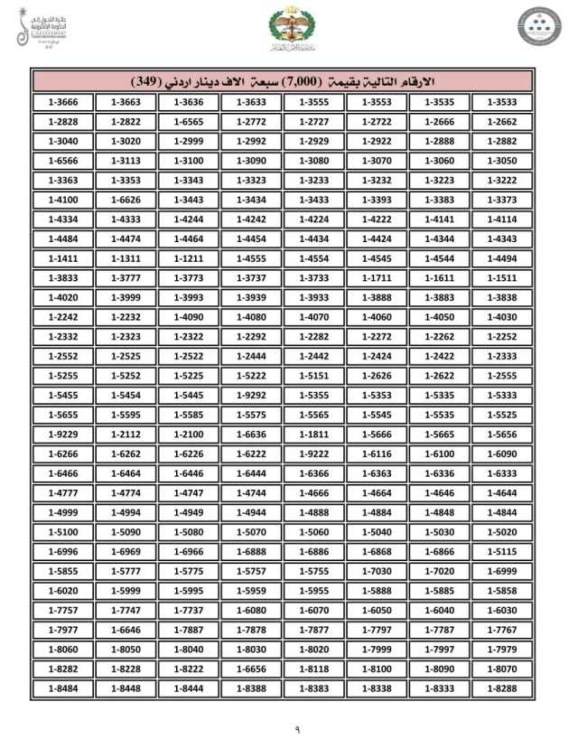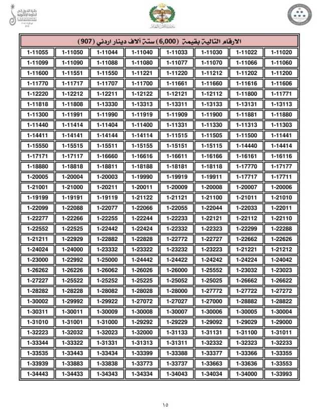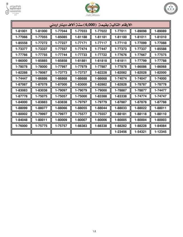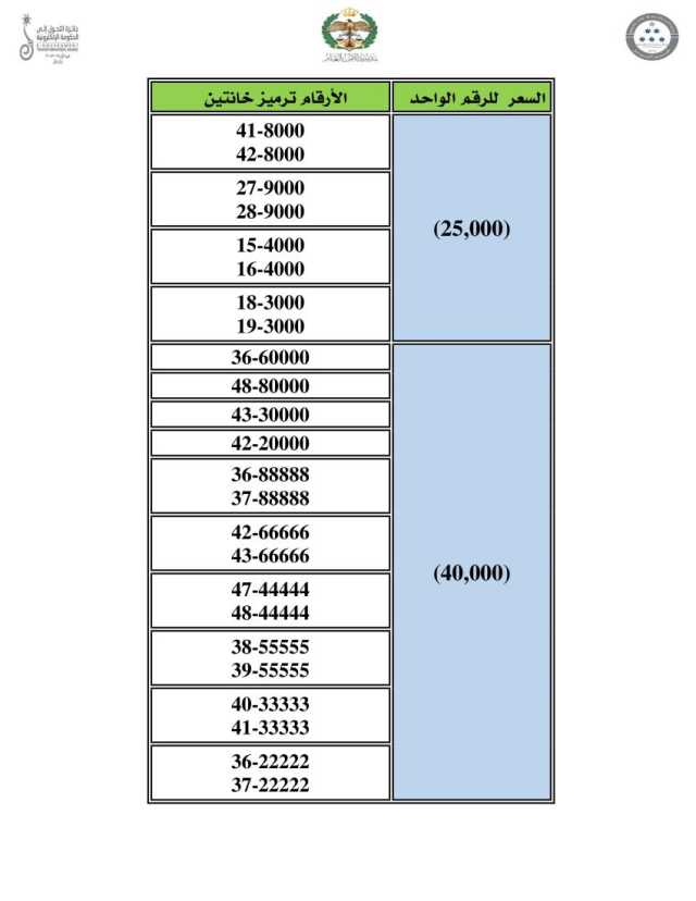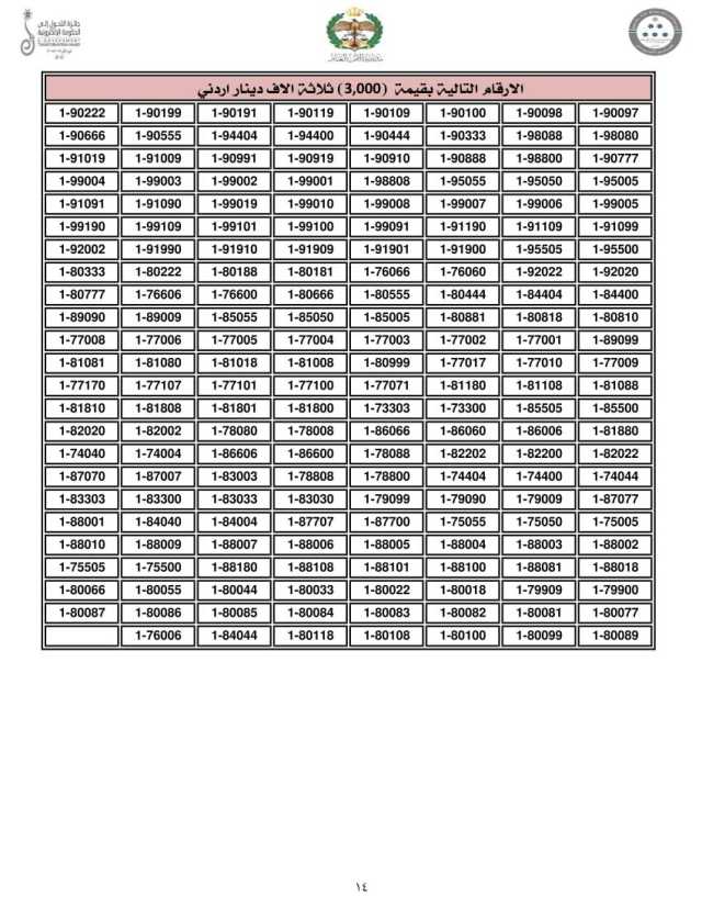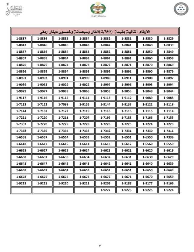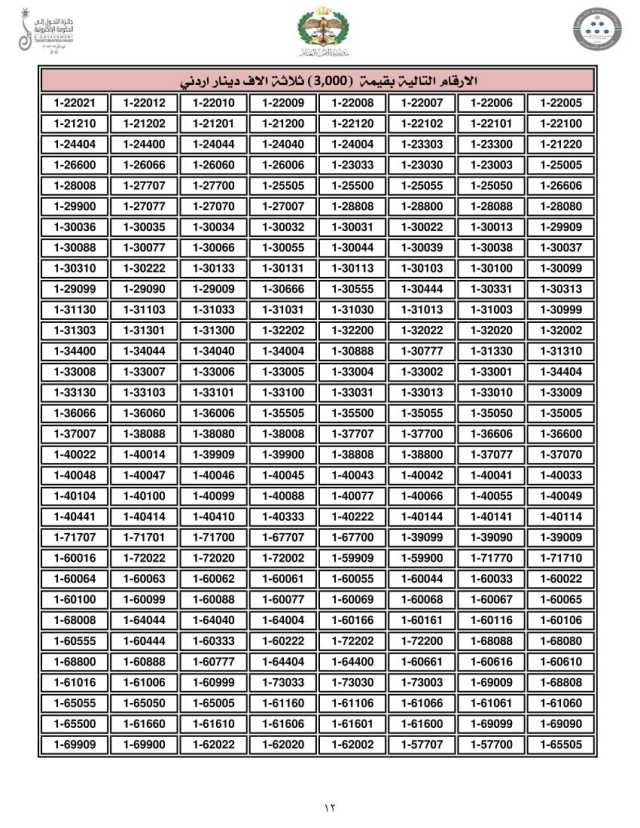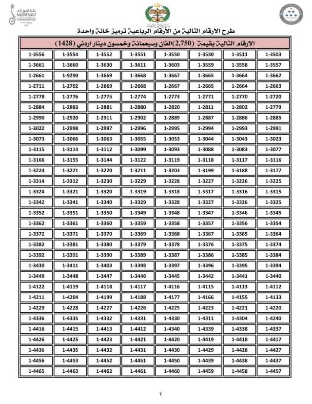 وستكون الأرقام ثنائية وثلاثية ورباعية وخماسية من مختلف الترميزات، والتي كان مقرراً بيعها بالمزاد العلني بأسعار تبدأ من 25 ألف دينار.