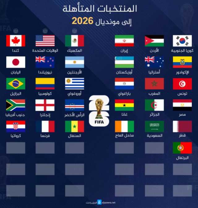 المنتخبات المتأهلة لكأس العالم 2026المصدر: الجزيرة