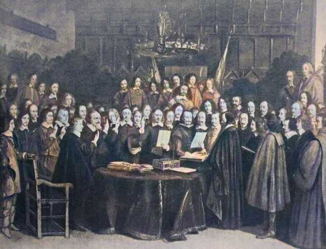 لكن في سياق المركزية الغربية، لم يشهد العالم سلاما أو نظاما إقليميا أو دوليا راسخا بمعنى الكلمة، قبل معاهدة وستفاليا (عام 1648) التي أنهت الحروب الدينية، وأطلقت قيام الدول القومية (الحديثة) التي دشنت وجودها بأساطيل الإبادة منطلقة نحو الأميركتين وأستراليا وسواحل أفريقيا والهند والصين وجزر الهند الشرقية والهند الصينية.