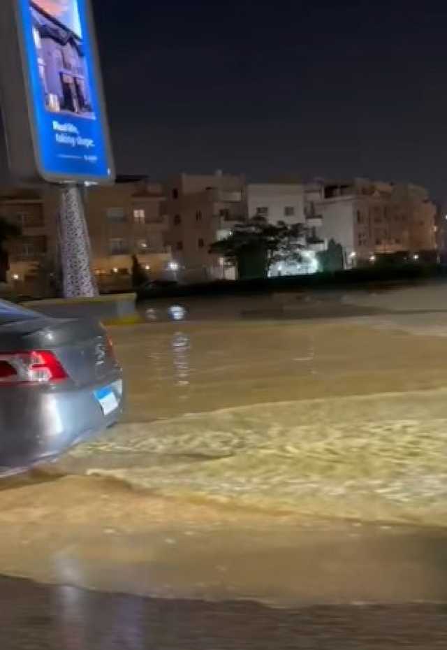 انفجار ماسورة مياه تعطل الحركة المرورية في التسعين الشمالي بالتجمع| صور
