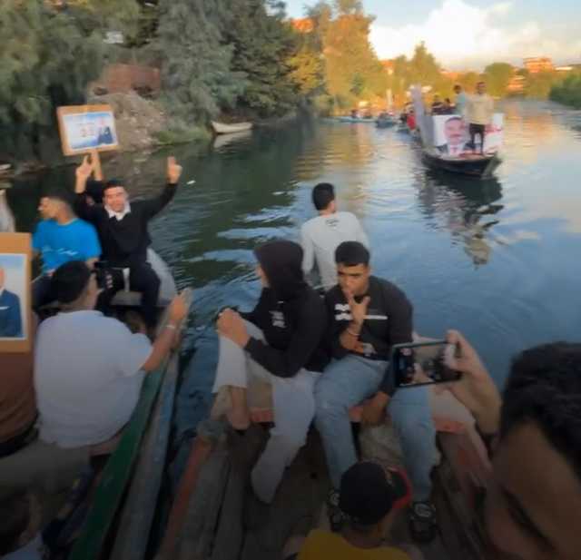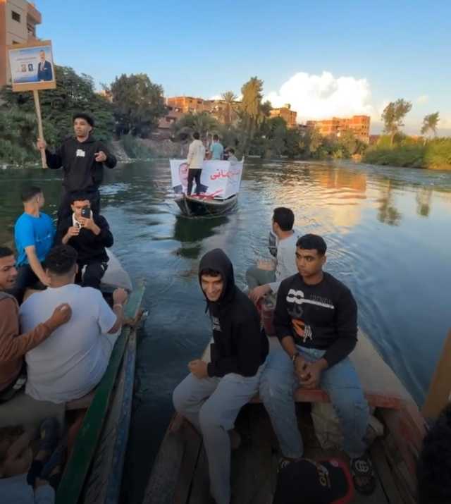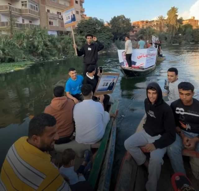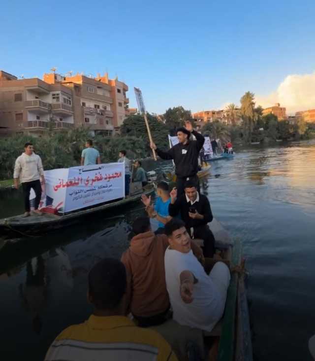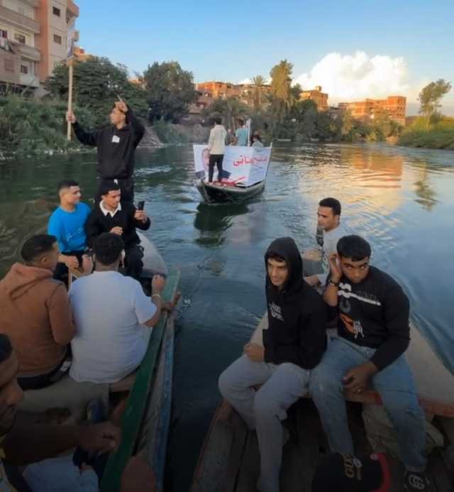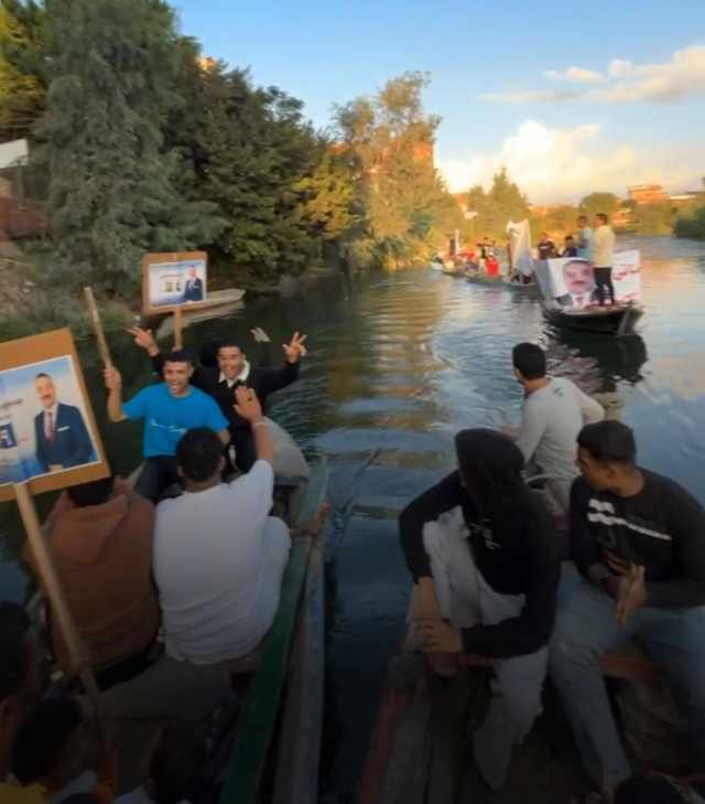 حيث فوجئ أهالي قرية ميت عافية التابعة لمركز شبين الكوم بمسيرة بالمراكب وتجمع للشباب حاملين صور مرشح في انتخابات مجلس النواب وسط هتافات لمرشحهم في مشهد انتخابي جديد للدعاية.