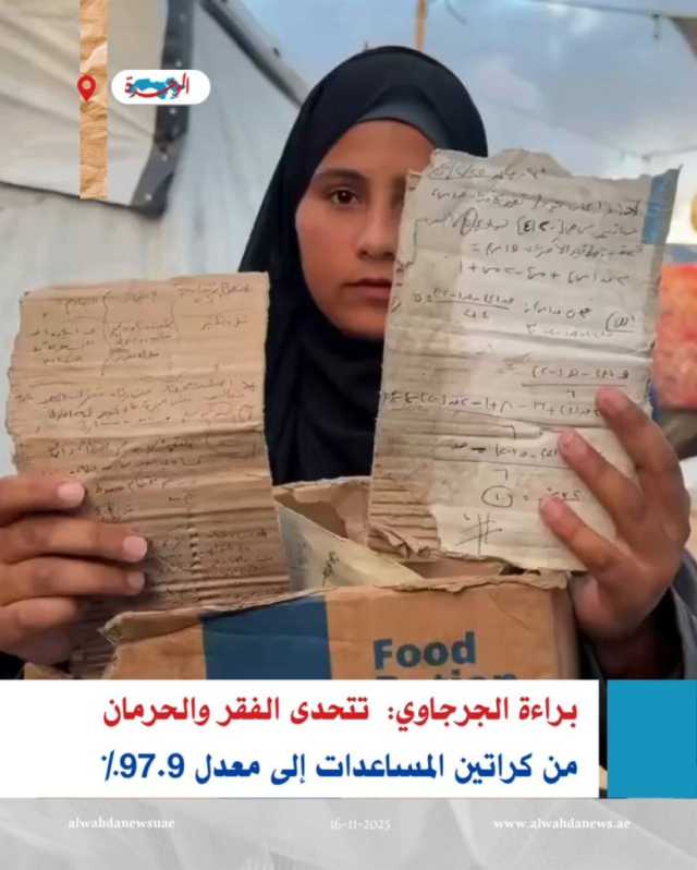 رغم عجز والدها عن شراء مستلزمات الدراسة حوّلت براءة كراتين المساعدات إلى دفاتر تكتب عليها دروسها. وبرغم البرد وغياب أبسط مقومات التعليم، تألقت في الثانوية العامة بمعدل 97.9%، لتثبت أن الإرادة أقوى من الفقر والحرمان pic.twitter.com/MajFJSO03N