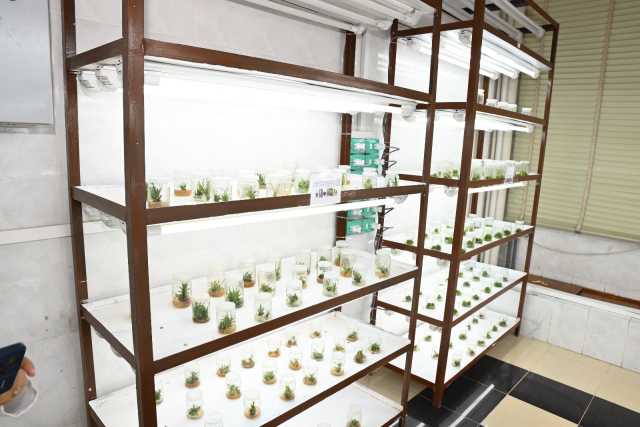 من جانبها، أوضحت الدكتورة منى أحمد أن المعمل يضم ثلاث غرف رئيسية مجهزة بأحدث الأجهزة، تشمل؛ غرفة إعداد البيئة: وتضم جهاز الأوتوكلاف، جهاز قياس PH، والزجاجيات اللازمة لتحضير البيئات الغذائية، وغرفة الزراعة: وتحتوي على كبائن الزراعة وأدوات نقل الأجزاء النباتية تحت ظروف معقمة، وحجرة التحضين: والمزودة بإضاءة ورطوبة مناسبة ورفوف توفر أفضل ظروف للنمو. وأضافت أن المعمل يضم عددًا من النباتات الاقتصادية المهمة مثل الموز، الدراجون فروت، الأناناس، إلى جانب نباتات الزينة والنباتات الطبية ذات الأهمية.