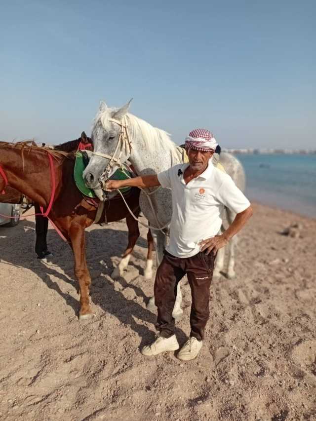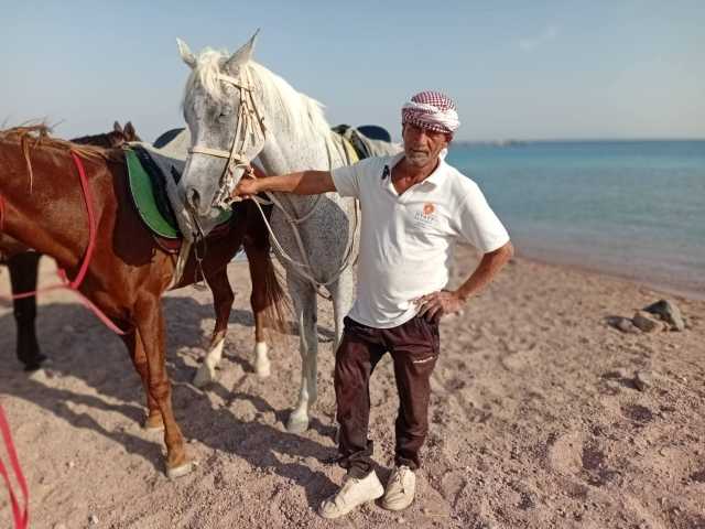 السيد عبد الدايم، الشهير بـ"أبو موسى"، هو ليس مجرد سايس خيول؛ بل أيقونة سياحية وفلكلورية على شواطئ اللاجونا الساحرة بمدينة دهب.