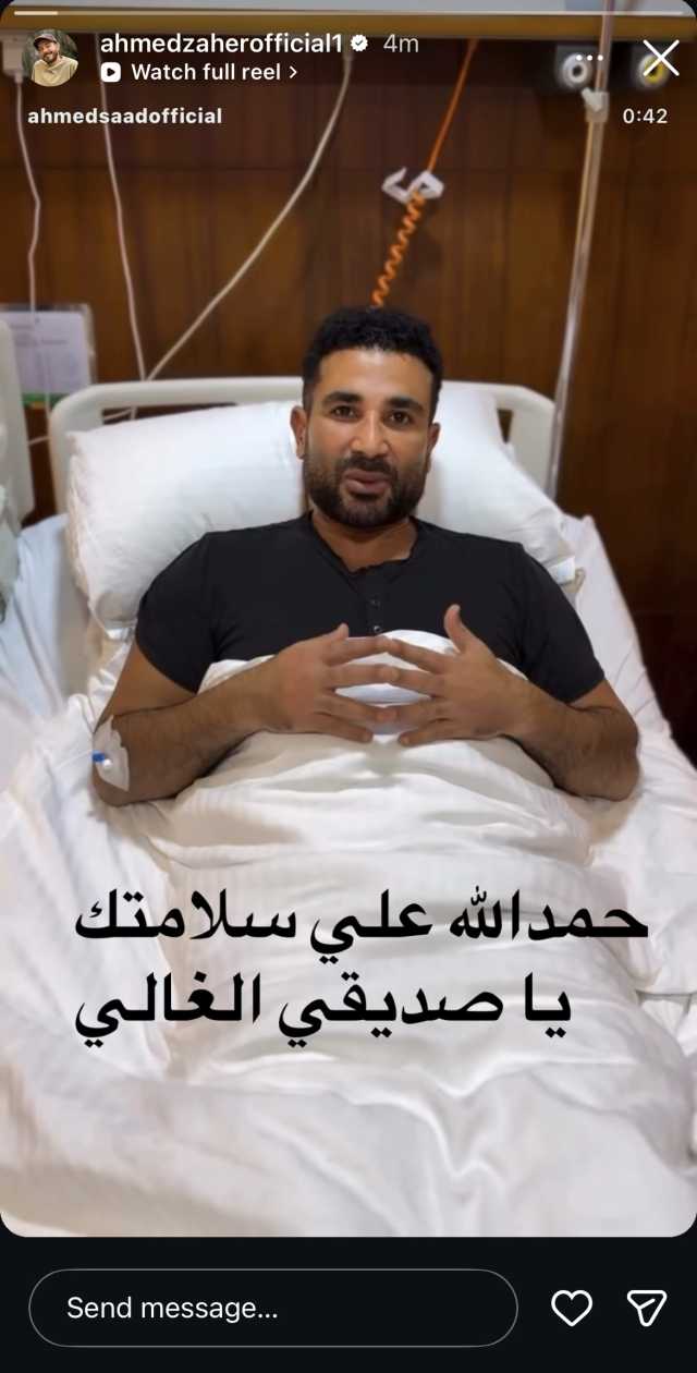 وكتب زاهر عبر ستوري حسابه على موقع التواصل الاجتماعي انستجرام: “حمد الله على سلامتك يا صديقي الغالي”.