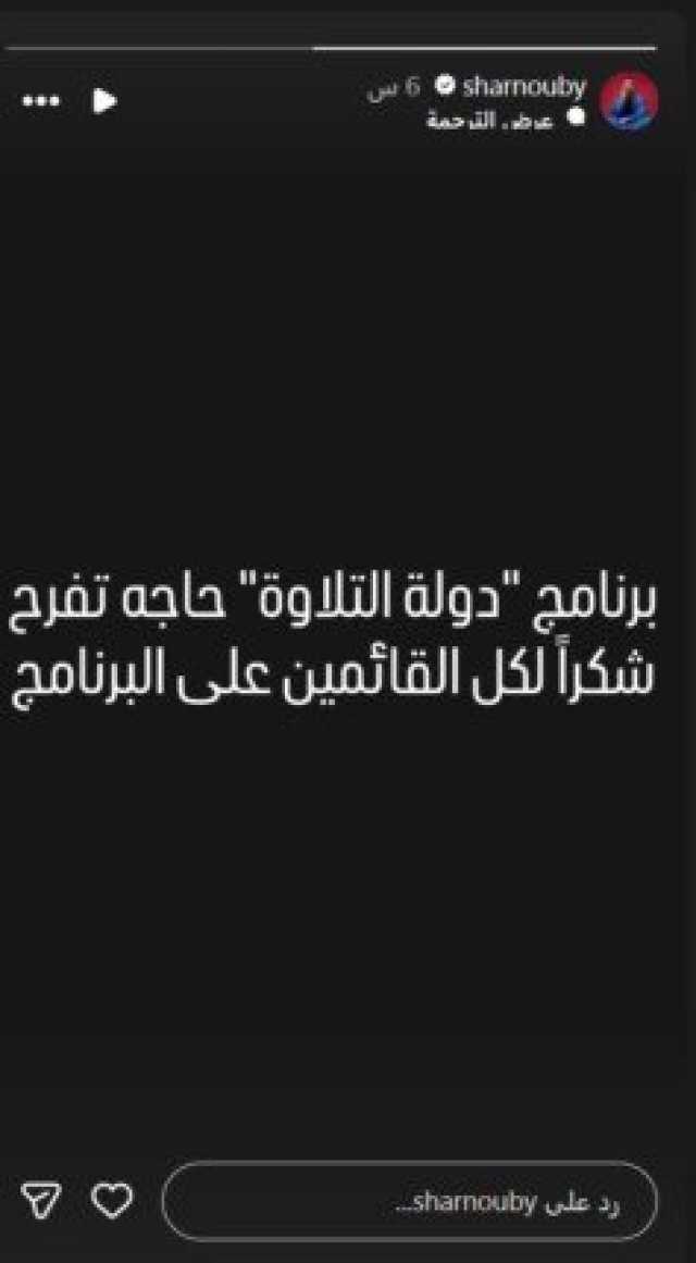 محمد الشرنوبي: «دولة التلاوة» حاجة تفرحونشر محمد الشرنوبي منشور عبر خاصية الاستورى بـ«إنستجرام»: «برنامج دولة التلاوة حاجة تفرح.