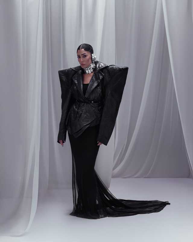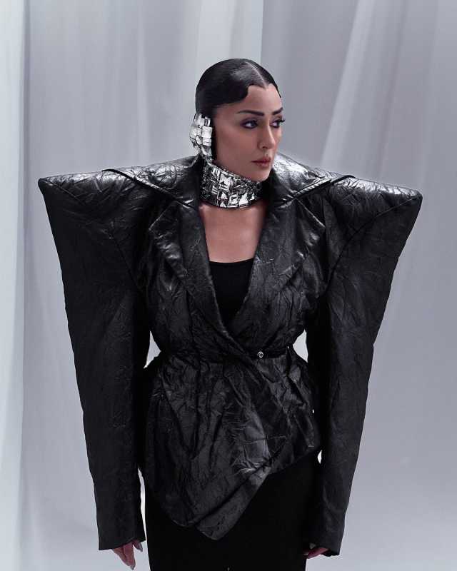 غادة عبد الرازق تخطف الأنظار بإطلالة سوداء جريئة في أحدث جلسة تصويراعتمدت غادة على جاكيت أسود بكتفين عريضتين وتصميم غير تقليدي بملمس جلدي فاخر، مع تنورة سوداء ضيقة تحتوي على شفاف في الجزء السفلي يمتد كذيل طويل، ما أضفى لمسة عصرية وجريئة على اللوك.